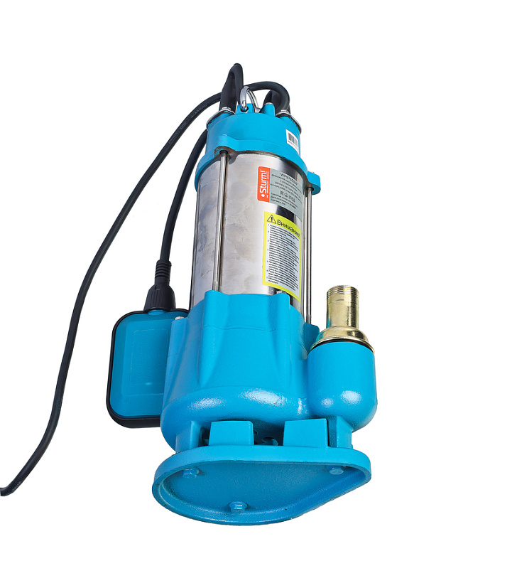 Sturm! WP9760SW – погружной дренажный насос – предназначен для откачивания жидкости из выгребных ям, септиков, канализационных коллекторов. Имеет комбинированный корпус: основание выполнено из прочного чугуна – это необходимо для свободного погружения насоса в сточные водные массы, корпус двигателя – из нержавеющей стали, стойкой к воздействию агрессивной среды. При мощности электромотора в 600 Вт модель характеризуется высокой производительностью – способна перекачивать за час до 6000 литров жидкости и обеспечивать ее подачу на высоту до 8,5 метров, осуществляя забор с глубины до 5 метров. Максимальная температура жидкости для насоса не должна превышать 35 градусов. Важная особенность модели Sturm! WP9760SW – наличие в конструкции специального режущего узла, позволяющего измельчать крупные фракции, а также изготовленной из чугуна крыльчатки, устойчивой к окислительным воздействиям. Насос снабжен поплавковым выключателем, который автоматически способен включать / выключать насос в зависимости от изменения уровня вод. Предусмотрена встроенаая термозащита – она автоматически отключает насос при перегреве и позволяет возобновить работу при последующем остывании до рабочей температуры. Установлен съемный выходной штуцер на резьбовом соединении, позволяющий кроме рукава подсоеденять ПНД или стальную трубу через резьбовое соединение.е.