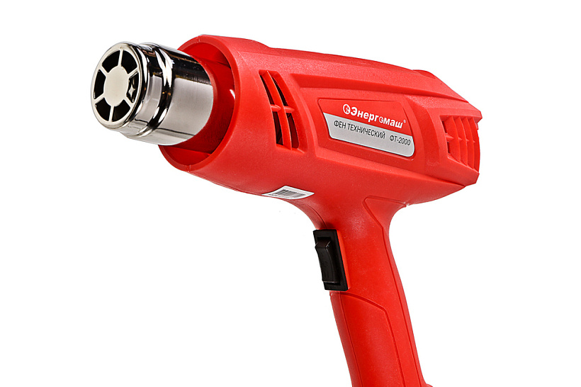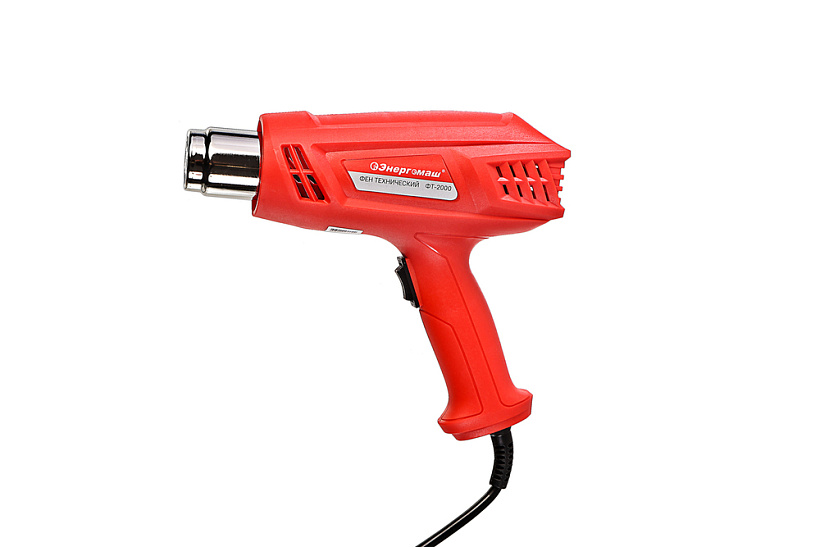 Энергомаш ФТ-2000 — надежный и простой в работе технический фен бытового назначения. Благодаря небольшой массе и компактным размерам модель обладает отличной маневренностью — уверенно контролируется и позволяет эффективное применение в условиях ограниченного пространства. Устройство может использоваться не только как мобильное, но и как стационарное — особая форма корпуса со специальной плоской основой дает возможность для большего удобства устанавливать фен в вертикальном положении. Инструмент имеет два рабочих температурных режима, которые совмещены с двумя скоростями воздушного потока: первый режим пониженной производительности обеспечивает максимальную температуру нагрева в 375°C при скорости выдува воздушного потока 300 л/мин, второй режим повышенной производительности — максимальная температура нагрева 495°C при скорости выдува воздушного потока 500 л/мин. Управление режимами происходит посредством специального переключателя. Для наиболее полного использования функционала в штатную комплектацию фена входят рефлекторное и редукционное сопла: рефлекторное сопло предназначено для разогрева пластиковых труб перед их изгибом в проектное положение в процессе монтажа, редукционное фокусирующее сопло применяется при точечной сварке, для герметизации стыков с помощью специальных наплавляемых лент, пайки медных труб и фитингов бесконтактным методом, при склеивании горячим способом любых материалов и в качестве переходника для фигурных или шлицевых насадок.