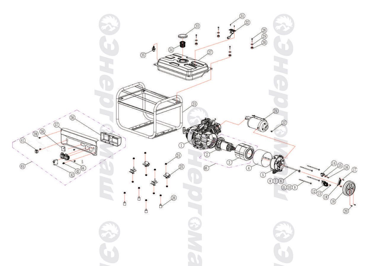 Прочный рамный каркас из закаленных труб защищает рабочие органы аппарата от механических воздействий и обеспечивают удобство перемещения и простоту установки. Система поддержания энергобезопасности автоматически отключает потребителей от генератора при возникновении короткого замыкания или перегрузки