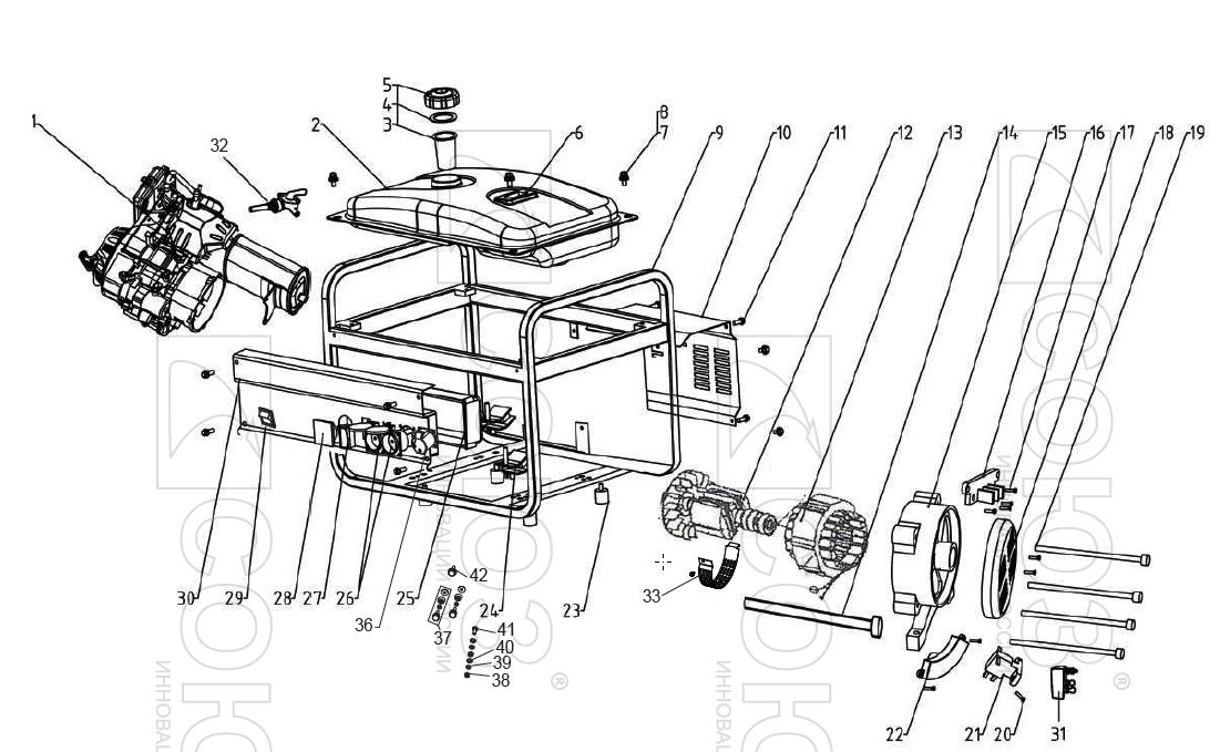 Прочный рамный каркас из закаленных труб защищает рабочие органы аппарата от механических воздействий и обеспечивают удобство перемещения и простоту установки. Система поддержания энергобезопасности автоматически отключает потребителей от генератора при возникновении короткого замыкания или перегрузки.