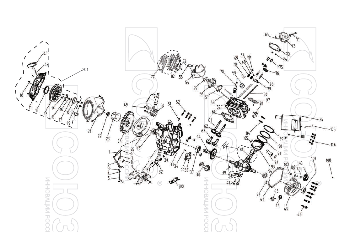 Двигатель прекрасно сбалансирован, стабильно работает во всех положениях без потери мощности и имеет низкий расхода топлива. Долговечность цилиндропоршневой группы обеспечивается за счет установки в цилиндр гильз из специального чугуна с последующей алмазной хонинговкой.
