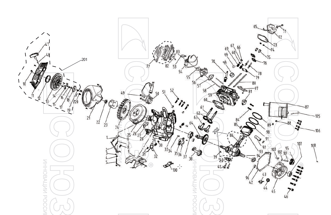 Двигатель прекрасно сбалансирован, стабильно работает во всех положениях без потери мощности и имеет низкий расхода топлива. Долговечность цилиндропоршневой группы обеспечивается за счет установки в цилиндр гильз из специального чугуна с последующей алмазной хонинговкой.