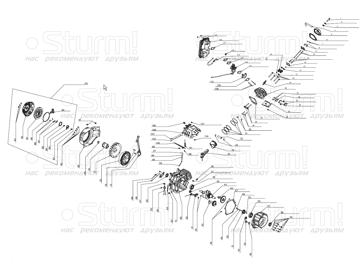 Двигатель прекрасно сбалансирован, стабильно работает во всех положениях без потери мощности и имеет низкий расхода топлива. Долговечность цилиндропоршневой группы обеспечивается за счет установки в цилиндр гильз из специального чугуна с последующей алмазной хонинговкой.