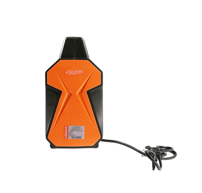 Sturm FH2034CQ — компактный и эргономичный тепловентилятор мощностью 2 кВт и с производительностью воздушного потока 139 м3/ч. Предназначен для быстрого прогрева и поддержания комфортной температуры в небольших помещениях площадью до 20 м2. Модель выполнена в современном, интерьерном дизайне, обладает небольшими габаритными размерами, и массой. Ключевая особенность тепловентилятора Sturm FH2034CQ — наличие в конструкции металлокерамического нагревательного элемента, за счет большой площади теплоотдающей поверхности которого гарантируется быстрый нагрев. Для того, чтобы ускорить циркуляцию нагретого воздуха в помещении, модель оснащена встроенным вентилятором. Управление устройством осуществляется парой регуляторов, расположенных на верхней панели. С помощью одного регулятора пользователь выбирает необходимый режим работы из предусмотренных трех: вентиляция без нагрева / теплый обдув / горячий обдув. Назначение второго регулятора — управление настройкой термостата. Визуальному контролю включенного устройства способствует отдельный индикатор питания, размещенный на панели управления. Прибор оснащен защитой от перегрева, а также имеет специальный датчик опрокидывания, отключающий питание в случае падения. Для удобства перемещения тепловентилятора с места на место, предусмотрена прочная рукоять.