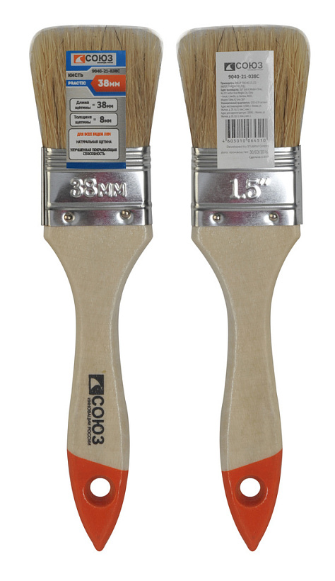 Кисть плоская "Практик" 1,5" (38 мм), натуральная щетина СОЮЗ