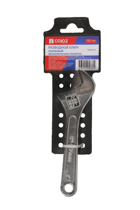 Разводной ключ 150мм, зев 19мм, хромированный, СОЮЗ