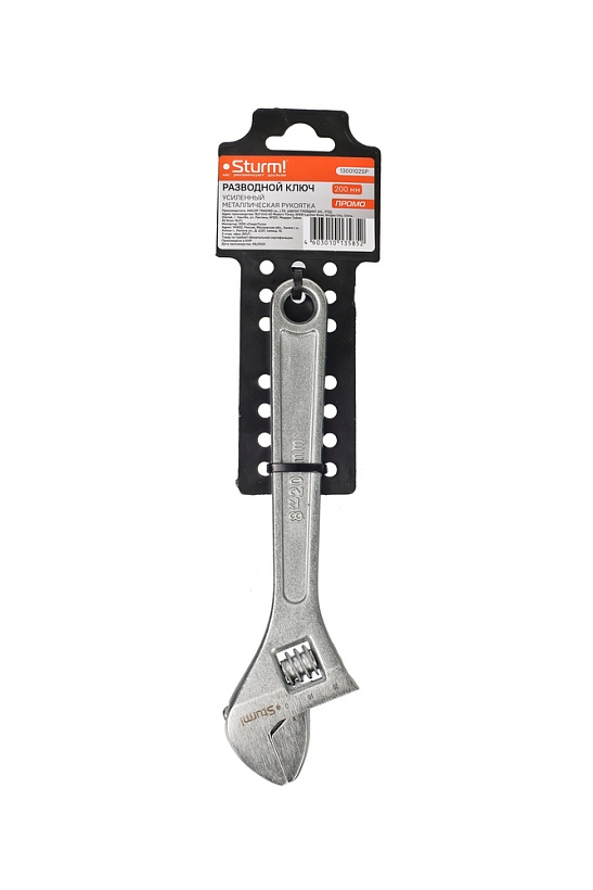 Разводной ключ 200мм, зев 26мм, хромированный, Sturm!