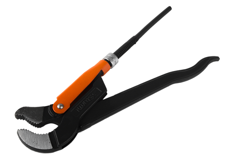S-образная форма губок позволяет фиксировать трубу в трёх точках для наилучшего захвата.