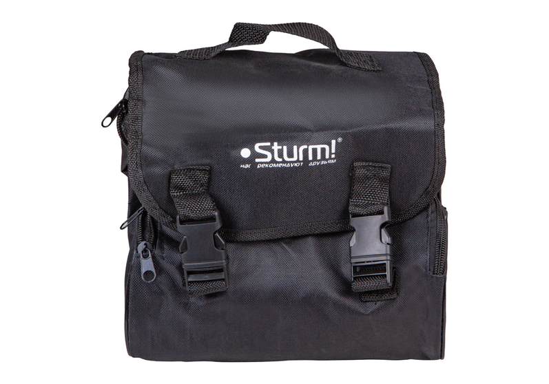 Прочная сумка из износостойкого материала позволяет компактно хранить компрессор в багажнике и удобно его переносить.