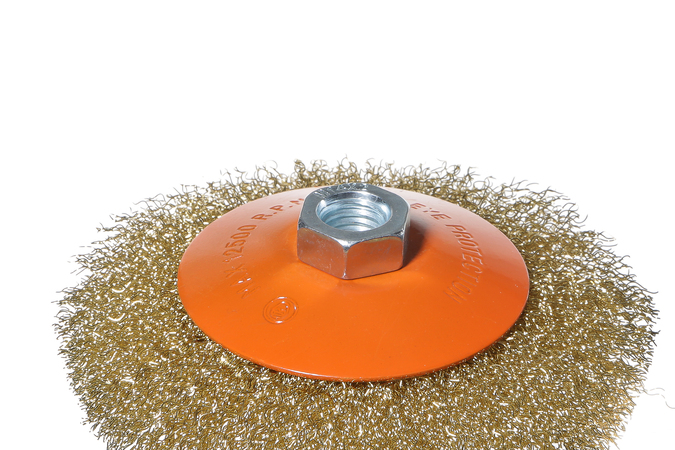 Корщетка-насадка является сменным элементом для УШМ. Применяется для зачистки от лака, краски и ржавчины различных поверхностей и изделий. Рабочая часть состоит из стальной волнистой проволоки с латунным покрытием.