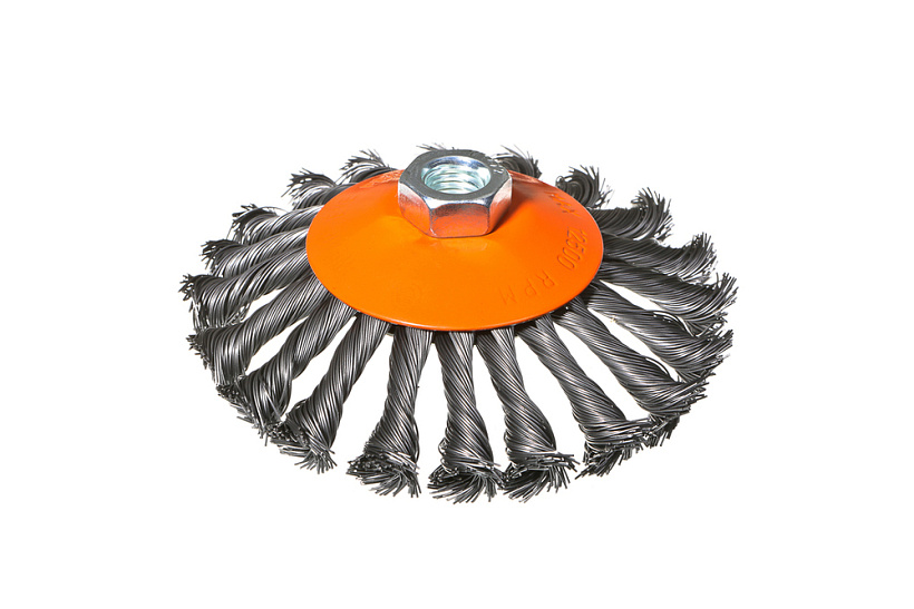 Корщетка-насадка является сменным элементом для УШМ. Применяется для зачистки от лака, краски и ржавчины различных поверхностей и изделий. Рабочая часть состоит из стальной витой проволоки.