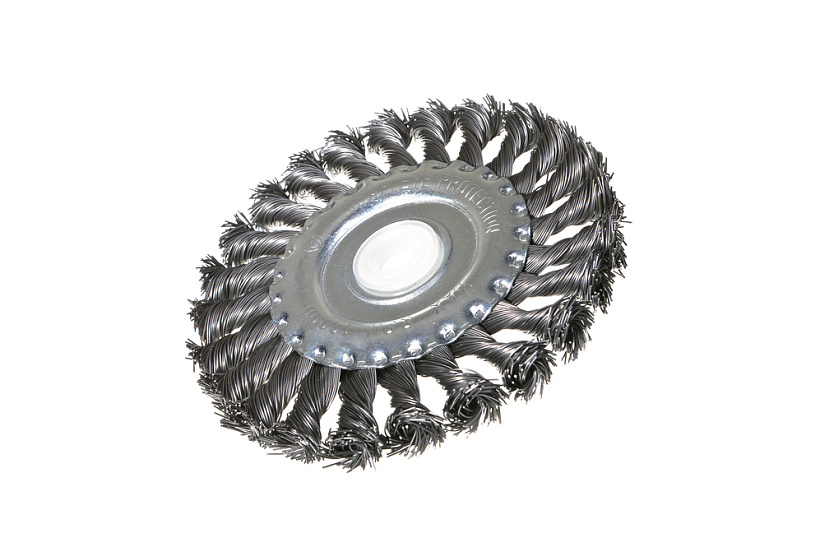 Корщетка-насадка является сменным элементом для УШМ. Щетка применяется для шлифовки, полирования, зачистки от лака, краски и коррозии различных поверхностей и изделий. Рабочая часть состоит из скрученной в пучки стальной проволоки. Специальная форма щетки в виде диска и упругие плетеные пучки позволяют работать в труднодоступных местах.