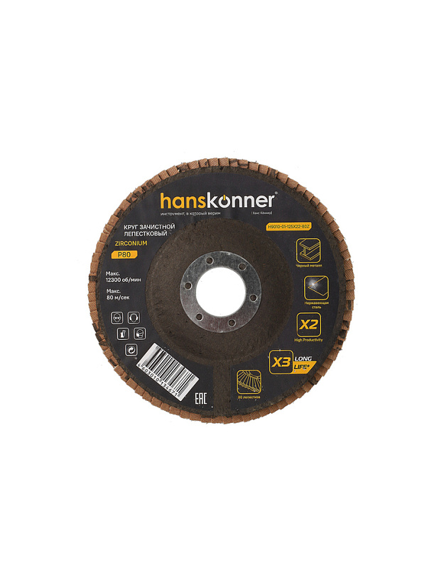 Круг зачистной лепестковый ЦИРКОНИЕВЫЙ 125х22, зерно 80, Hanskonner