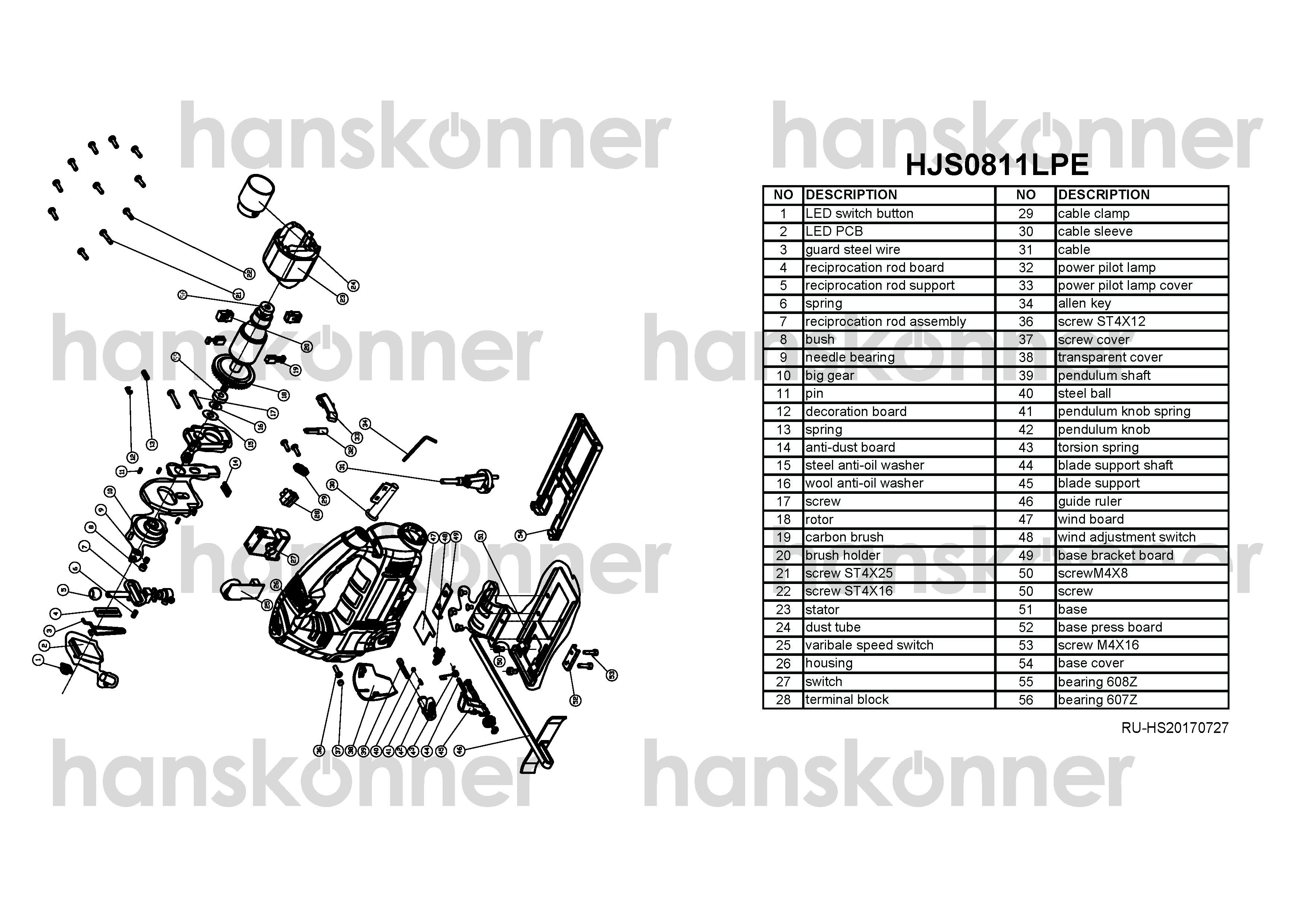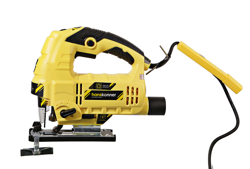 Hanskonner HJS0811LPE – универсальный и производительный электрический лобзик. Характеризуется оптимальными массогабаритными показателями и выверенной эргономикой – модель надежна в хвате и отлично контролируется. Лобзик оснащен 860 Вт электромотором и мощной механической частью – позволяет выполнять пропилы до 120 мм в древесине, и до 12 мм в металле. Возможность точной настройки инструмента применимо к конкретному материалу обеспечивают электронная система регулировки ходов штока, а также, функция маятникового хода с четырьмя режимами – с помощью специального переключателя пользователь выбирает оптимальный режим работы с упором на максимальную производительность, либо максимальное качество реза с наименьшим количеством сколов. Модель получила усиленную литую силуминовую платформу, стойкую к деформациям и механическим повреждениям. Для удобства пользователя, на Hanskonner HJS0811LPE установлен механизм безынструментальной замены полотна, за счет чего, смена оснастки производится максимально быстро и просто, без необходимости применения специального ключа. Эффективный выдув опилок из рабочей зоны обеспечивает функция 2WAYBLOW. При необходимости возможно подключение строительного пылесоса. LED подсветка рабочей зоны, дает возможность полноценно использовать лобзик даже в условиях недостаточного освещения. Мягкий, резиновый, четырехметровый сетевой кабель 4VelcroRubber обеспечивает значительную рабочую площадь до 50 м2, без применения дополнительного удлинителя, а также сохраняет гибкость и эластичность при низких температурах. Наличие специального хомута-липучки позволяет с легкостью зафиксировать кабель в собранном положении. Прочный пластиковый кейс гарантирует сохранность устройства и аксессуаров в процессе транспортировки.