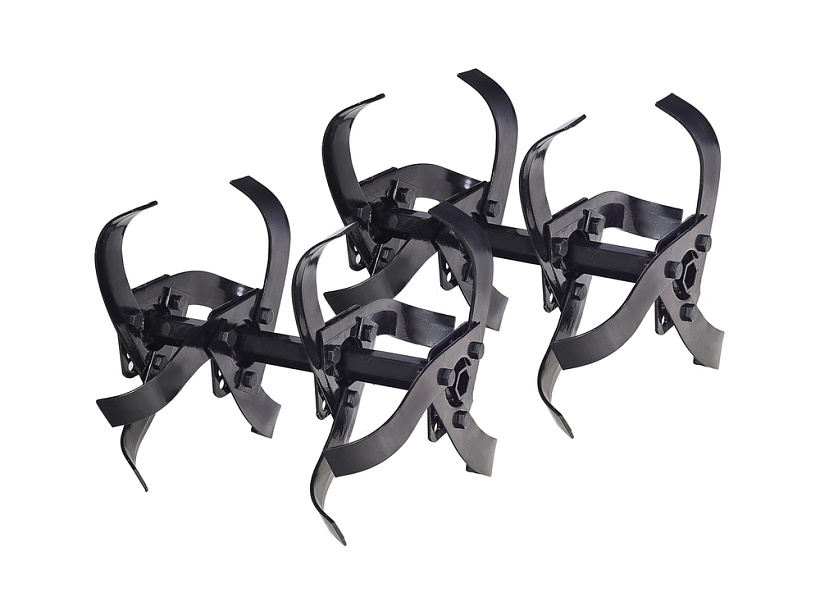 В оснащение мотоблока входит трансмиссия на основе трехступенчатого редуктора (2 ступени переднего хода и одна заднего) с реверсом, пара устойчивых ведущих колес, удобная система управления (рычаги и тумблеры непосредственно на руле). Есть набор устанавливаемых фрез. Ведущие колеса мотоблока – это пара стальных дисков с пневматическими шинами, с «болотным» протектором, не допускающим пробуксовки.