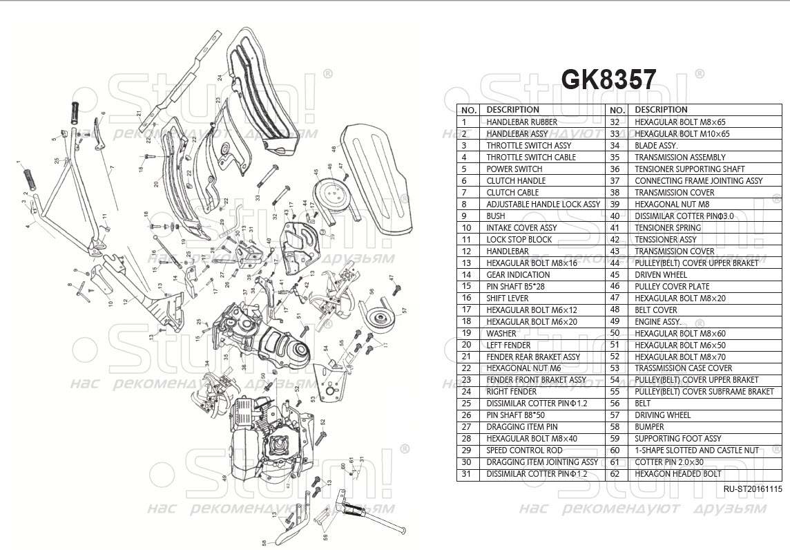 Двигатель прекрасно сбалансирован, стабильно работает во всех положениях без потери мощности и имеет низкий расхода топлива. Долговечность цилиндропоршневой группы обеспечивается за счет установки в цилиндр гильз из специального чугуна с последующей алмазной хонинговкой.