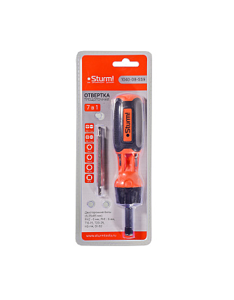 - Отвертка трещоточная 7 в 1 Sturm! 1040-08-SS9 используется для монтажа и демонтажа крепежных изделий при выполнении ремонтных работ.