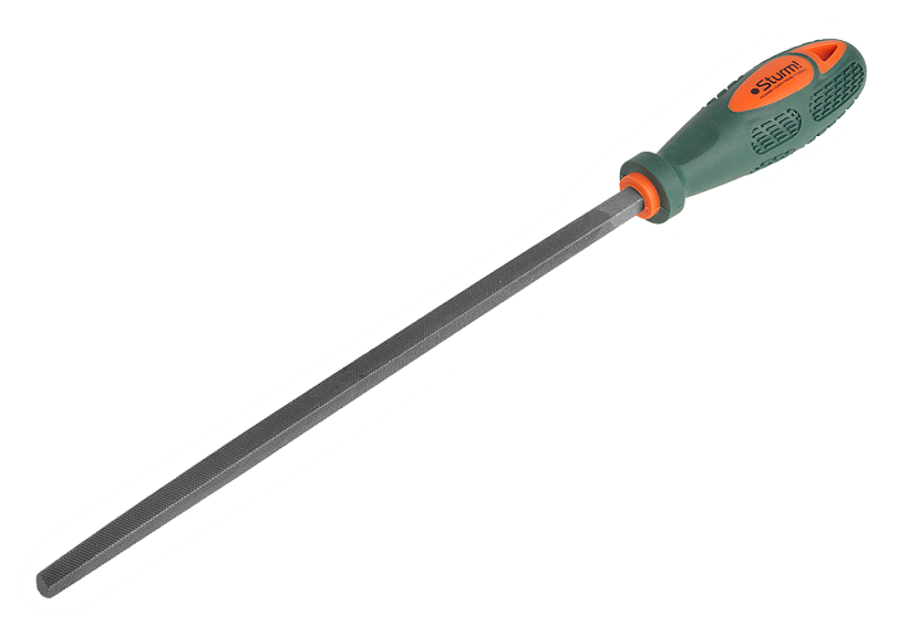 Напильники наиболее распространенными и популярными инструментами для слесарной обработки металлов. Рабочая часть выполнена из качественной инструментальной стали марки Т12 и имеет двойную перекрестную насечку. Рукоятка выполнена из пластика и имеет специальное противоскользящее покрытие инструмент по обработке твердых металлов, таких как сталь и чугун.