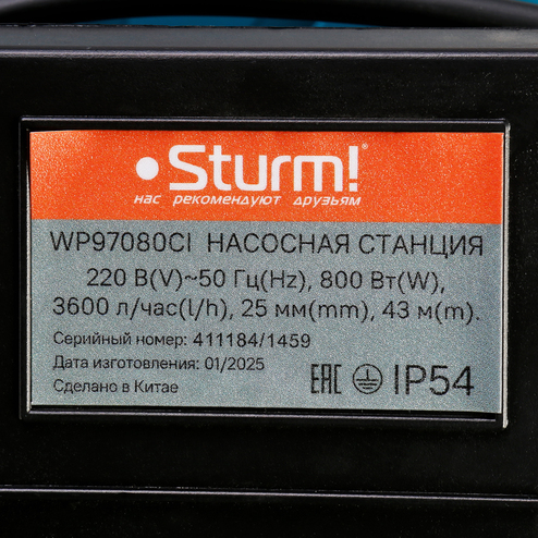 Sturm WP97080CI – автоматическая насосная станция – предназначена для создания давления в водопроводной сети загородных домов, дач и автоматического поддержания давления в заданном диапазоне, независимо от источника воды (водопровод, колодец, скважина и т д). Низкий уровень шума при работе позволяет устанавливать насосную станцию как вблизи, так и непосредственно в жилой зоне. Надежный асинхронный 800 ваттный двигатель в паре с мощным насосом, обеспечивают высокую производительность в 60 л/ мин и максимальный напор 43 метров. Забор воды осуществляется с глубины до 8 метров. Модель оснащена емким 24 литровым гидроаккумулятором с внутренней мембраной из натуральной резины, а также механическим реле давления для поддержания заданного уровня давления в водопроводе. Долговечности работы насосной части способствует крыльчатка, изготовленная из антифрикционного полимера PPO.