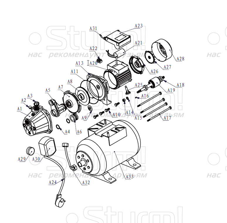 Sturm WP9775VS – автоматическая насосная станция – предназначена для создания давления в водопроводной сети загородных домов, дач и автоматического поддержания давления в заданном диапазоне, независимо от источника воды (водопровод, колодец, скважина и т д). Низкий уровень шума при работе позволяет устанавливать насосную станцию как вблизи, так и непосредственно в жилой зоне. Надежный асинхронный 750 ваттный двигатель в паре с мощным насосом, обеспечивают высокую производительность в 44 л/ мин и максимальный напор 35 метров. Забор воды осуществляется с глубины до 8 метров. Модель оснащена емким 24 литровым гидроаккумулятором с внутренней мембраной из натуральной резины, а также механическим реле давления для поддержания заданного уровня давления в водопроводе. Долговечности работы насосной части способствует крыльчатка, изготовленная из антифрикционного полимера PPO.