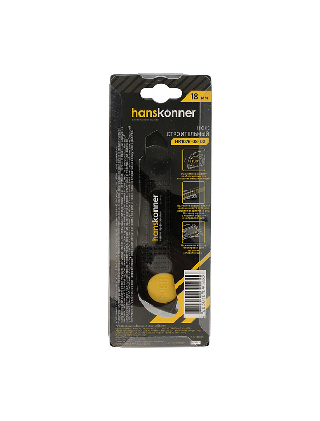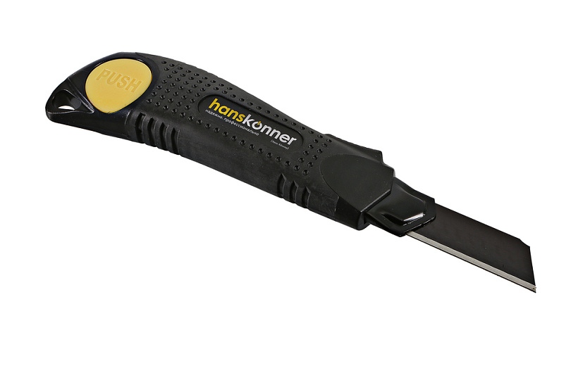 Нож 18мм, обрезиненный корпус, лезвие SK2 0.7мм, Hanskonner