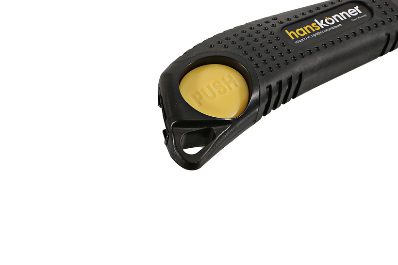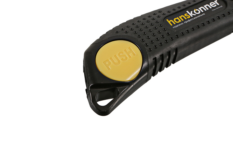 Строительный нож Hanskonner QuickReload (быстрая замена лезвия) подходит для работ с повышенными нагрузками, требующими особой точности и быстрой замены отрабо танного лезвия.. Благодаря сверхпрочной металлической направляющей достигается улучшенная устойчивость конструкции п ри давлении на инструмент. Лёгкий и прочный корпус из высококлассных материалов удобно лежит в руке, а текстурирован ная обрезиненная поверхность с упором под большой палец обеспечивает полный контроль инструмента. Лезвие из высо кокачественной стали SK2 c трёхгранной заточкой и дополнительной обработкой лазером служит в 5 раз дольше стан дартного. Уникальный запатентованный механизм быстрой блокировки/разблокировки направляющей позволит легко заменить лезвие и максимально оперативно вернуться к работе.