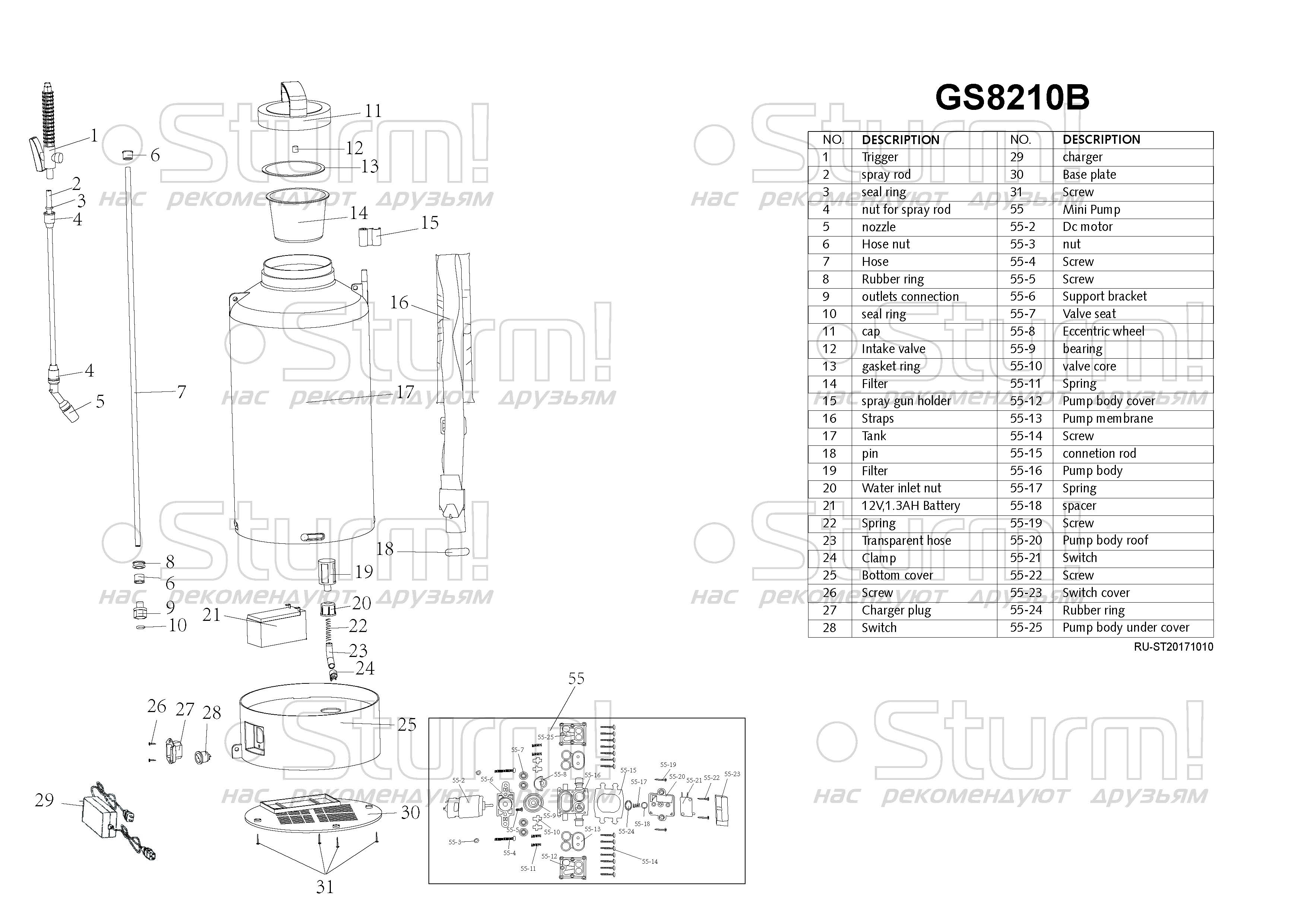 Опрыскиватель аккумуляторный Sturm! GS8210B