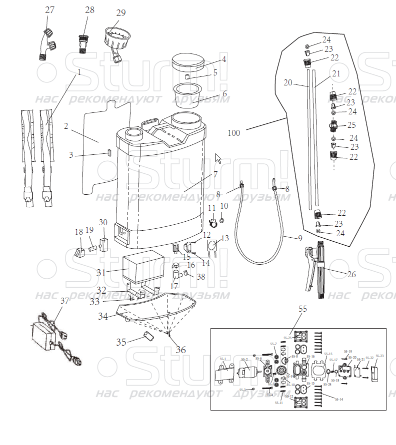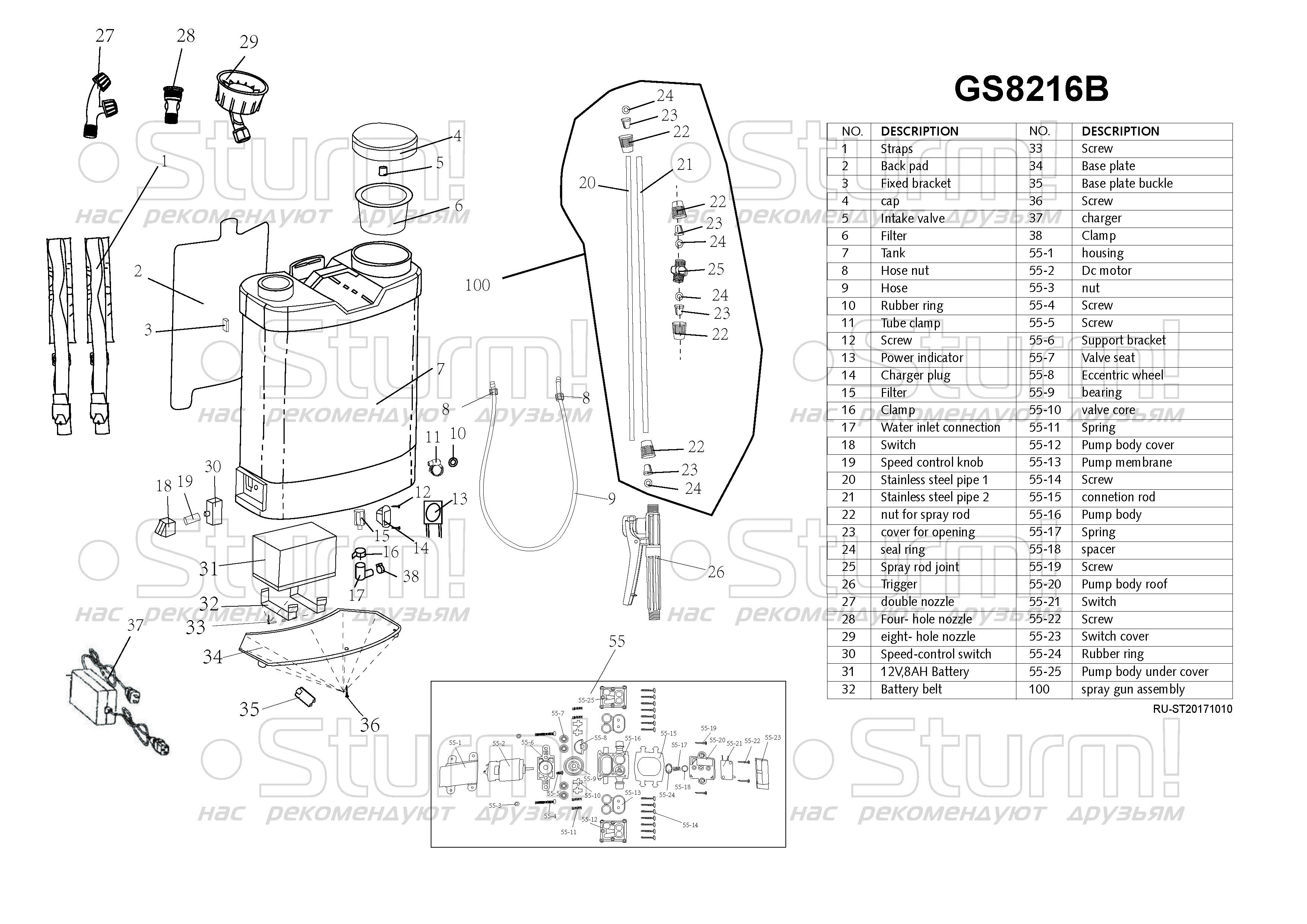 Опрыскиватель аккумуляторный Sturm! GS8216B