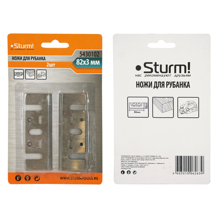 Ножи для рубанка, 82x28х3мм, 2 шт, перетачиваемые, Sturm!