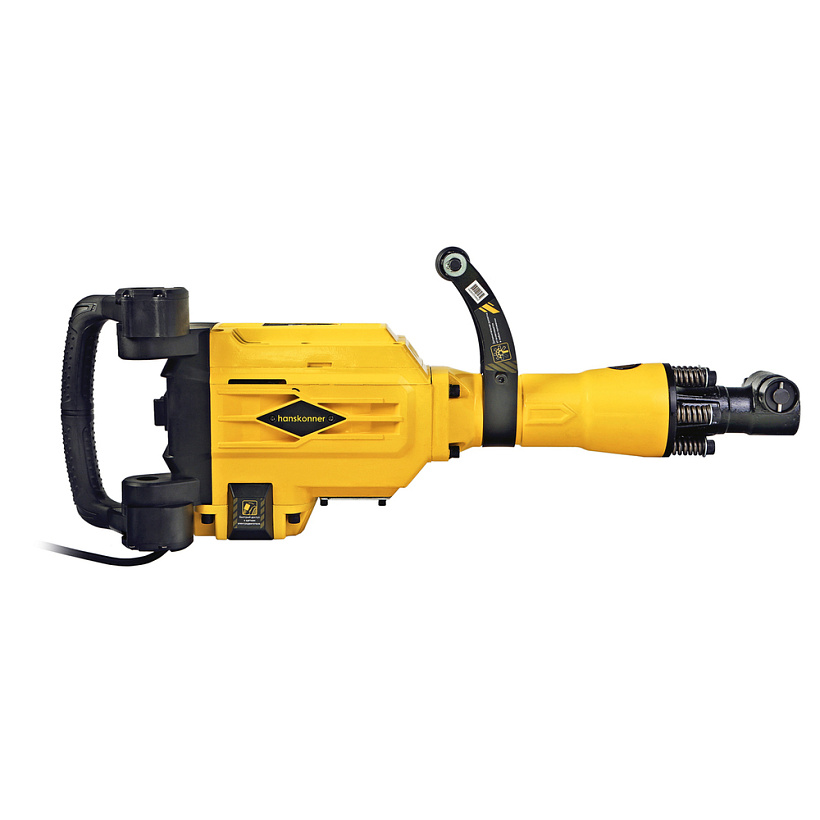 Hanskonner HRH2048VC – мощный и производительный отбойный молоток с типом патрона HEX. Предназначен для разрушения конструкций из бетона, железобетона, кирпича и камня, долбления асфальтовых, бетонных и плиточных покрытий. Инструмент обладает отличной развесовкой, за счет чего достигается его уверенный контроль, а также тщательно проработанной эргономикой. Регулируемая на 360° дополнительная D-образная рукоять обеспечивает надежный хват в любом положении отбойного молотка, а наличие антивибрационной задней рукояти способствует снижению нагрузки на оператора при работе. Модель оснащена 2100 Вт электродвигателем и мощным ударным механизмом, развивающим энергию удара в 50 Дж – это позволяет быстро и эффективно справляться с задачами по демонтажу различной сложности. Высокий ресурс инструмента при работе в особо тяжелых условиях гарантируют бронированный арамидной нитью электродвигатель ArmorProtect и закаленные шестерни редуктора. Для простоты обслуживания модель имеет функцию быстрого доступа к щеткам, способствующую их замене без разбора элементов корпуса. Длинный пятиметровый сетевой кабель 5VelcroRubber дает возможность расширить рабочую зону до 78 м2 без необходимости применения дополнительного удлинителя. Наличие специального фиксатора-липучки позволяет быстро и просто фиксировать кабель в транспортном положении. Удобство хранения и перемещения отбойного молотка с места на место обеспечивает штатный металлический кейс-тележка.