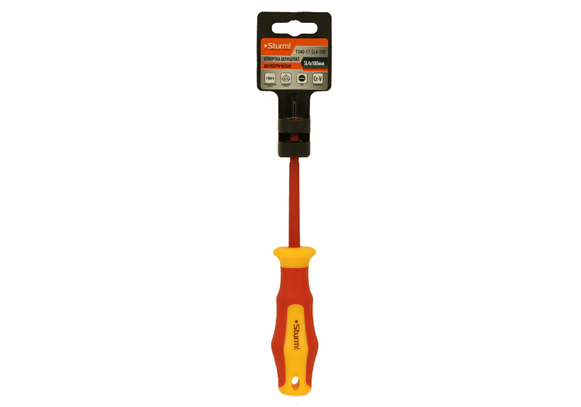 Отвертка плоский шлиц, SL4х100мм, CrV, диэлектрическая Sturm!