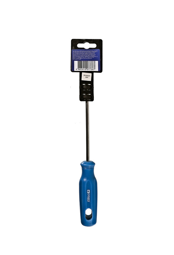 Отвертки имеют эргономичную ПВХ рукоятку с отверстием для подвеса. Рабочая часть выполнена из качественной инструментальной стали, что определяет ее прочность и износостойкость. Жало отвертки намагничено для удержания метизов при работе.
