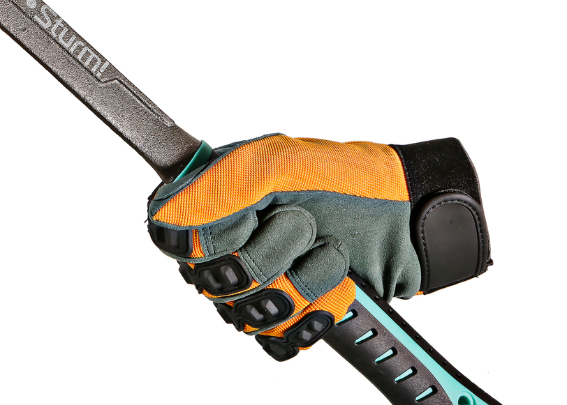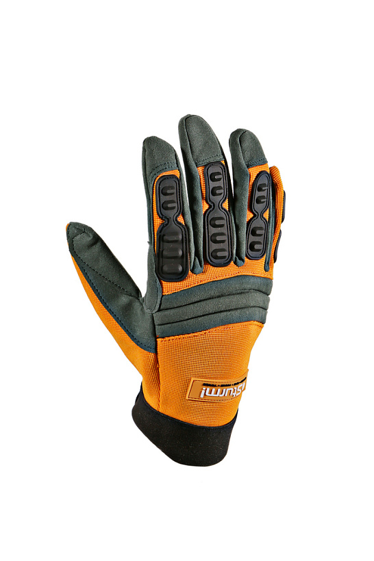 На пальцах с тыльной стороны нашиты специальные твердые накладки, которые дают высокую степень защиты в тяжелых условиях работы.