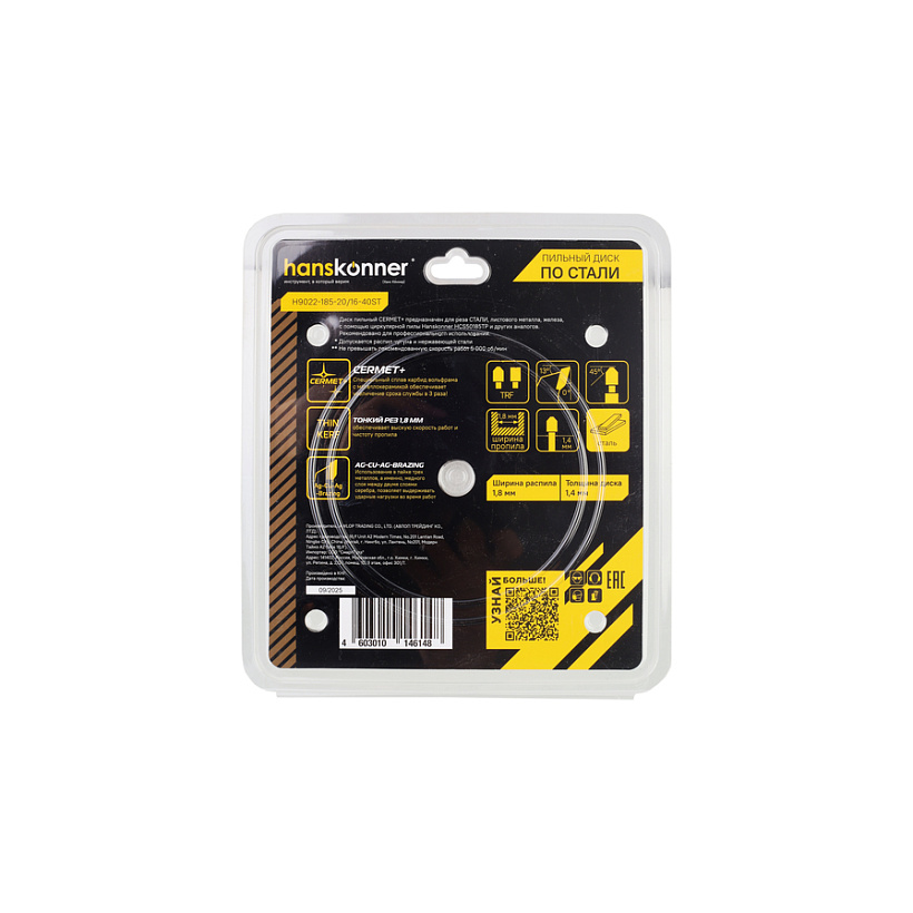 Диск пильный Hanskonner H9022-185-20/16-40ST