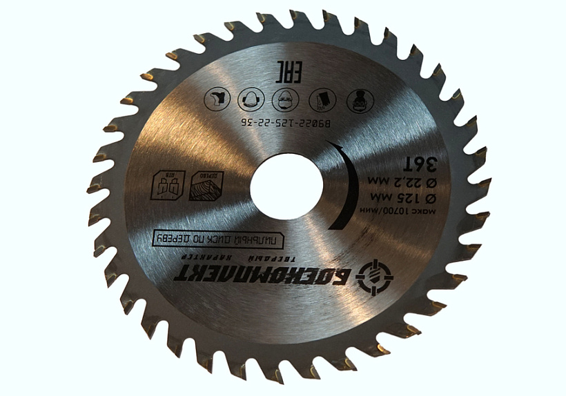 Пильный диск по дереву 125x22,23мм, 36 зубьев, БОЕКОМПЛЕКТ
