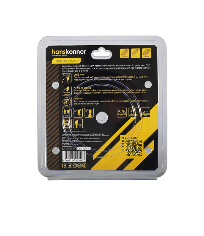 Пильный диск по дереву 165x30/20мм, 24 зубьев, Hanskonner