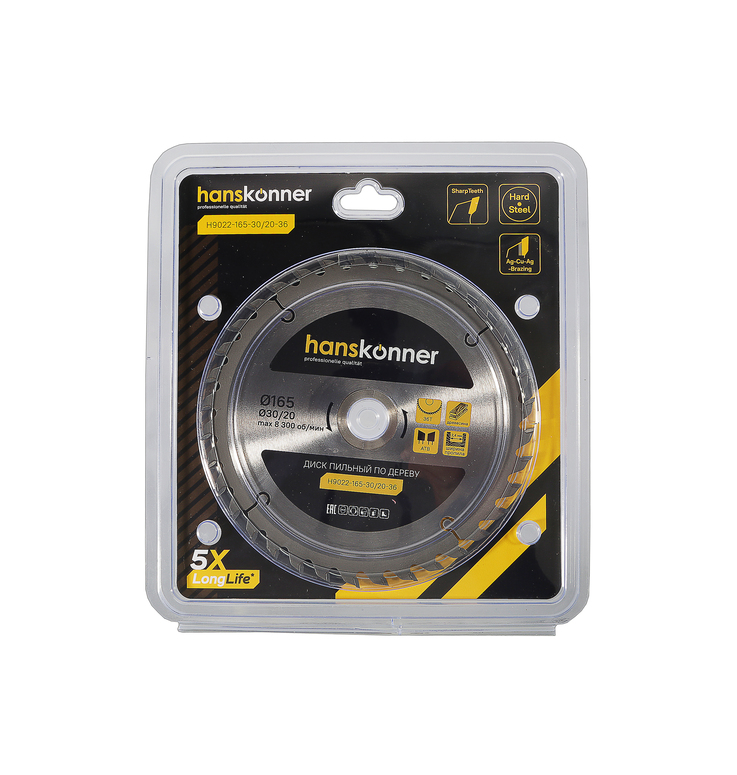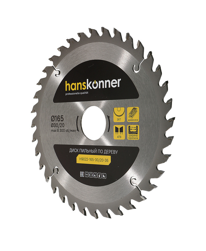 Пильный диск по дереву 165x30/20мм, 36 зубьев, Hanskonner