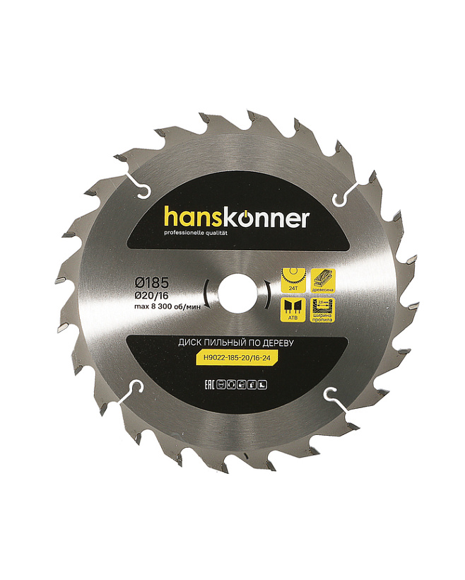 Пильный диск по дереву 185x20/16мм, 24 зубьев, Hanskonner