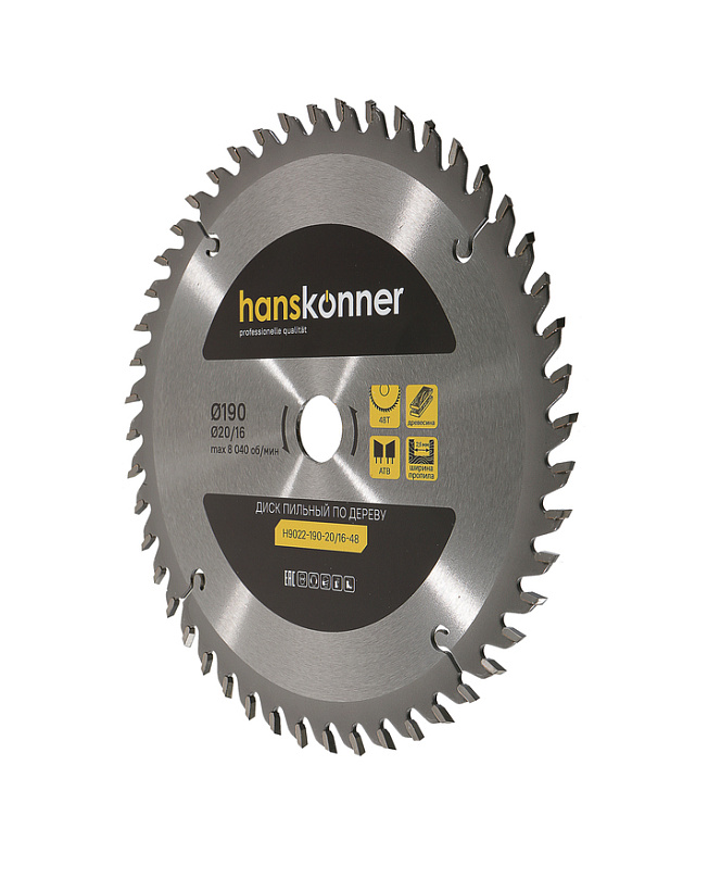 Пильный диск по дереву 190x20/16мм, 48 зубьев, Hanskonner