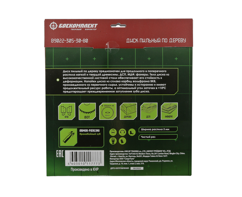 Пильный диск по дереву 305x30мм, 80 зубьев, БОЕКОМПЛЕКТ
