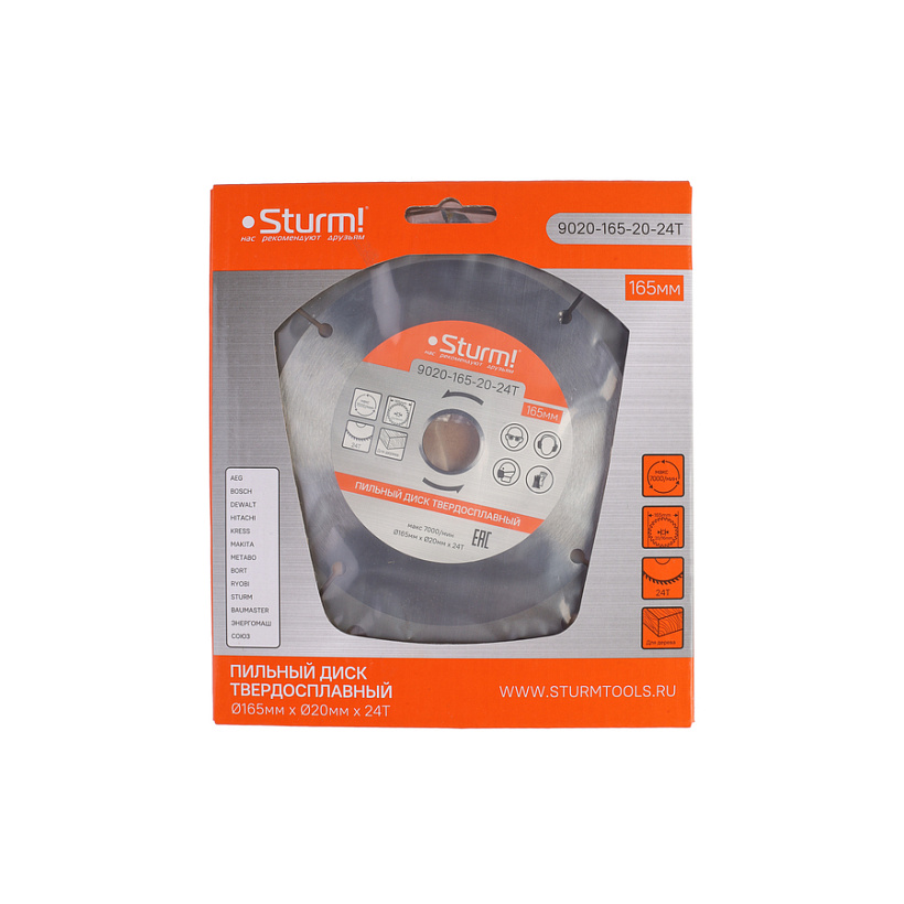 Пильный диск, размер 165x20/16x24 зуба, твердосплавные напайки Sturm!