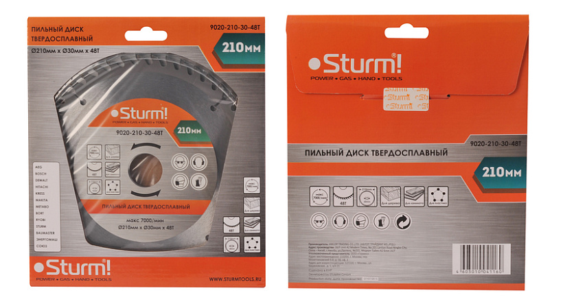 Пильный диск, размер 210x30x48 зубьев, твердосплавные напайки Sturm!