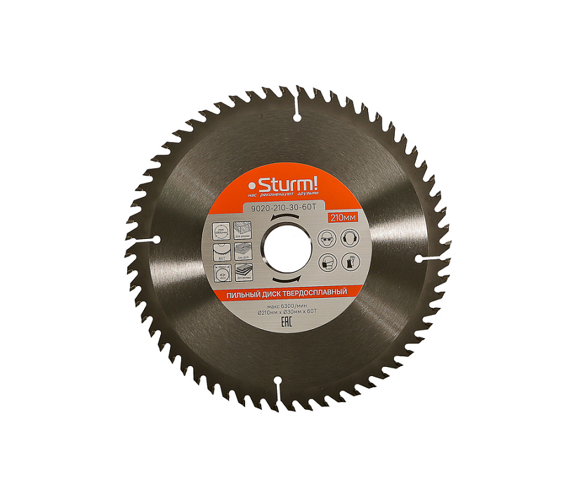 Пильный диск, размер 210x30x60 зубьев, твердосплавные напайки Sturm!