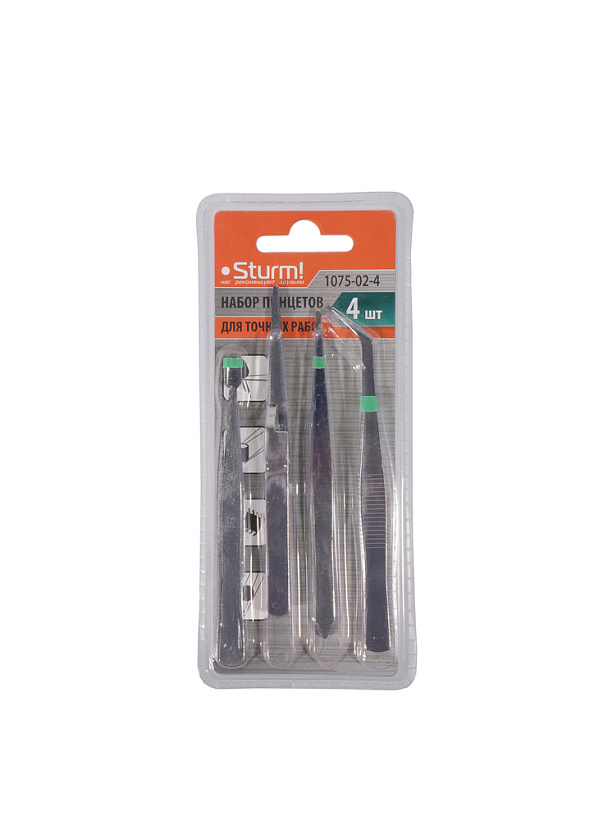 Набор пинцетов Sturm! 1075-02-4 Комплект состоит из 4 видов пинцетов: прямого пинцета, пинцета с захватом под углом 45, пинцета с изогнутым широким захватом и пинцетом обратного действия.