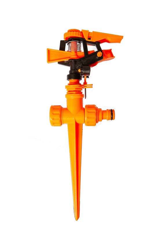 Разбрызгиватель (дождеватель) импульсный устанавливается в грунт при помощи колышка, который является неотделимой частью инструмента. Предназначен для орошения лужаек, газонов, огорода, цветника.