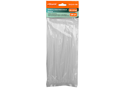 - Хомуты пластиковые Sturm! 7012-01-150 являются универсальным крепежным изделием, которое применяется во многих сферах.