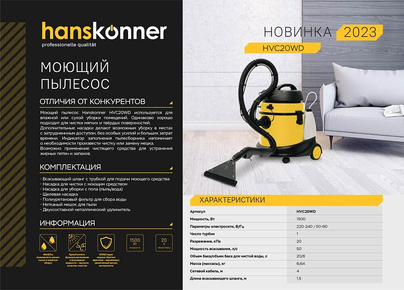 Пылесос HVC20WD Hanskonner