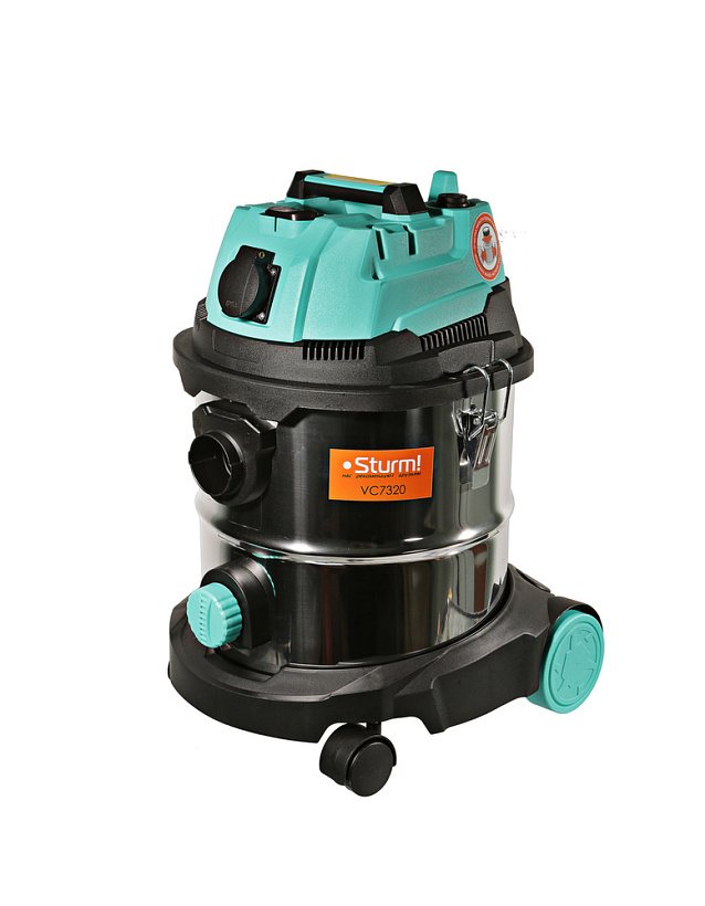 Sturm VC7320 – универсальный строительный пылесос – незаменимый помощник при уборке как в мастерских, так и в бытовых помещениях, офисах, квартирах, салонах автомобилей и т д. Благодаря наличию вместительного 20 литрового бака, пылесос позволяет производить уборку на достаточно больших площадях, без необходимости его частой очистки. Бак изготовлен из нержавеющей стали, что гарантирует стойкость к механическим повреждениям и агрессивным средам. Модель оснащена 1700 Вт электромотором, позволяющим добиться высоких показателей по скорости воздушного потока (до 40 м / с) и разрежению на входе – это способствует быстрому и эффективному удалению мусора, и пыли. Помимо традиционного режима всасывания, конструкцией предусмотрен режим выдува воздуха – он идеально подходит для экспресс-очистки рабочих столов и верстаков, а также очистки штроб и т д. Также, устройство может применяться и для сбора негорючих жидкостей. Для удаления собранной жидкости в нижней части бака предусмотрена сливная горловина. Благодаря мощной системе фильтрации, с применением высокоэффективного HEPA фильтра, предотвращается попадание пыли и абразивных частиц в двигатель. Важной особенностью Sturm VC7320 является функция дистанционной самоочистки фильтра нажатием специальной кнопки в верхней части корпуса. Наличие функции синхронного старта, позволяет использовать пылесос, как единую систему с любым другим инструментом мощностью от 110 до 2000 Вт – при ее активации, запуск пылесоса производится автоматически сразу после запуска основного инструмента, что положительно влияет на удобство работы и позволяет сконцентрировать внимание преимущественно на рабочем процессе, а не вспомогательных операциях. Модель комплектуется металлической телескопической трубкой со ступенчатой регулировкой длины, трехметровым высокопрочным гофрированным шлангом, набором насадок, набором фильтров, мешками пылесборниками, а также универсальным адаптером. Удобству перемещения пылесоса с места на место способствует платформа на 4-х независимых колесах.