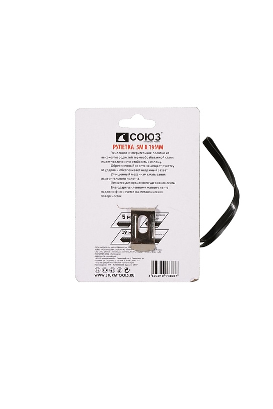 Рулетка 5x19мм, обрезиненная, магнит на зацепе, СОЮЗ
