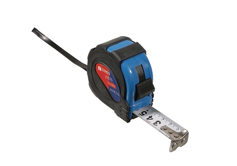 Рулетка 5x25мм, обрезиненная, магнит на зацепе, СОЮЗ
